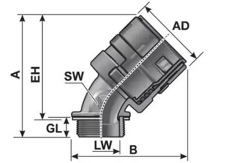 Суперплотное и безопасное для кабеля резьбовое соединение для шлангов M-PRO P-VW 45°-K с пластиковой наружной резьбой под углом 45° используется для быстрого и надежного подсоединения гофрированных труб. Спецификация:. ECE 324 R 118 Annex 6+8. Другие преимущества:. Монтаж / демонтаж гофрированных труб без инструментов. Высокая плотность прокладки. Высокая степень фиксации. Характеристики.