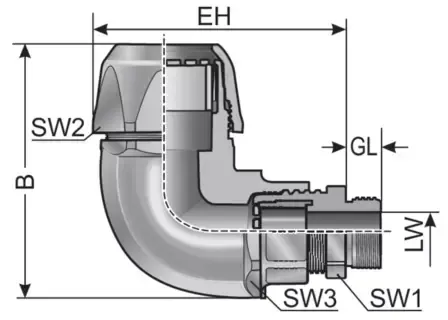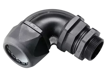 Комбинированные резьбовые соединения для шлангов и кабеля CVW 90° изготавливаются из специально модифицированного полиамида 6 и термопластичного эластомера. Комбинированные резьбовые соединения для шлангов и кабеля CVW 90° имеют следующие преимущества:. Быстрый монтаж: вставить шланг, закрутить верхнюю часть — готово. Отсутствие теряющихся деталей, состояние при поставке соответствует состоянию при монтаже. Стойкость к вибрации благодаря защелкивающейся накидной гайке.