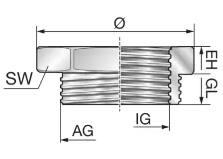 Переходные муфты для сужения типа RR изготавливаются из латуни с никелированной поверхностью. Они поставляются с метрической резьбой или резьбой типа Pg и с накаткой или шестиугольной конструкцией в зависимости от типа. Переходные муфты для сужения поставляются в следующих исполнениях:. Метрический/метрический. Метрический/Pg. Pg/Pg.