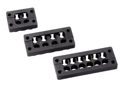 Простая разъемная панель с кабельными вводами для прокладки претерминированных проводов. 2-компонентная рама. Простой монтаж спереди. Высокая плотность прокладки до 48 строк. Встроенная разгрузка от натяжения. Подходит для стандартных вырезов для 24-, 16-, 10- и 6-полюсных промышленных разъемов. Подходящая втулка для кабельного ввода: KDT/X.